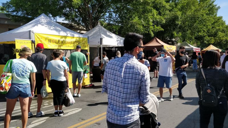 农夫市场没有停车场。附近街边可停车的几乎停满了。转来转去,稍微远些的地方找到个停车位。