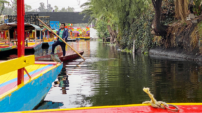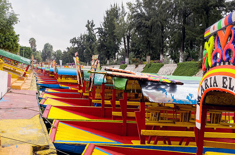 到了运河边上,最先映入眼帘的就是这些色彩艳丽的木船。我们将要登上木船,游览运河。这就是富有墨西哥特色的彩船游(trajinera boat tour)