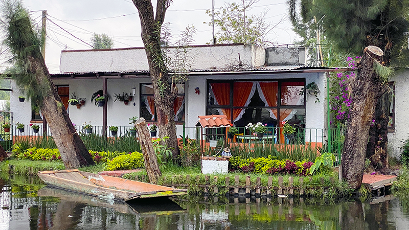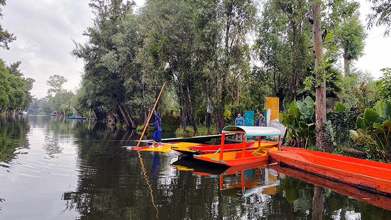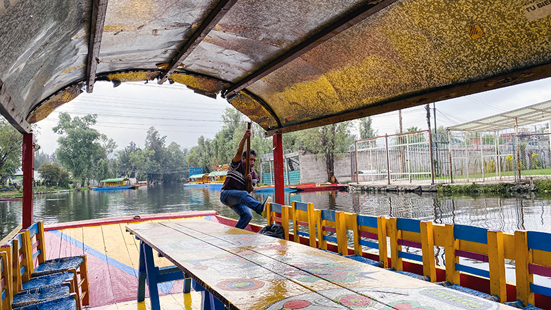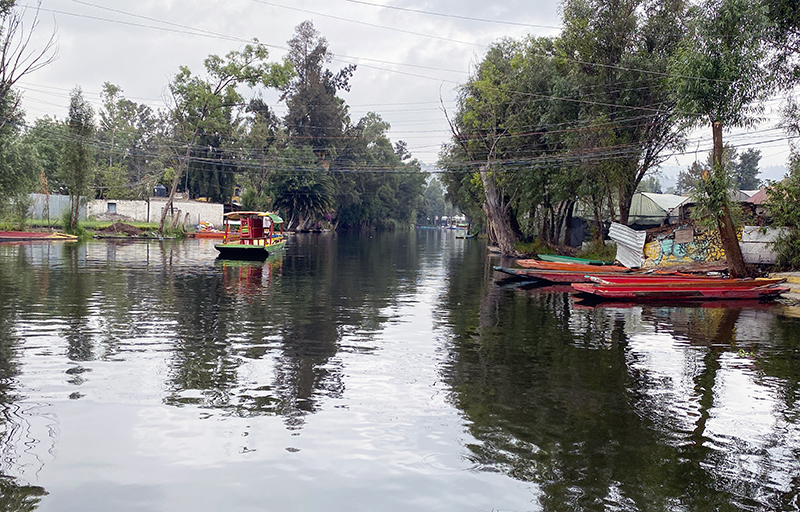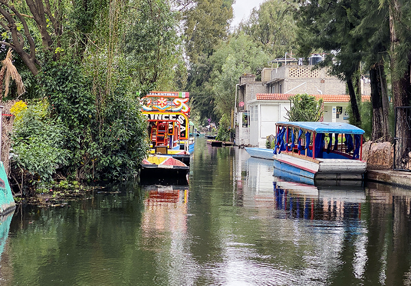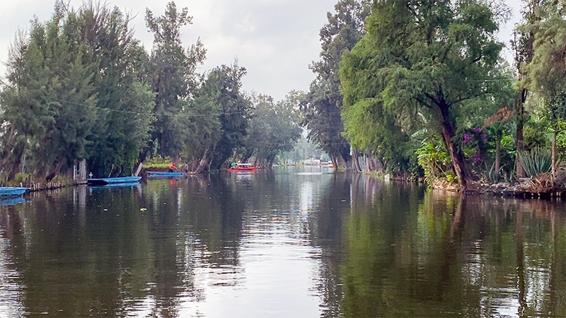 这些运河水道就是在阿兹特克人和后来的西班牙人填湖造城时挖掘的,用来连接各个岛屿的通道。原来城中的河道早已填平,成为城市的一部分。这里的水道是原始的运河。