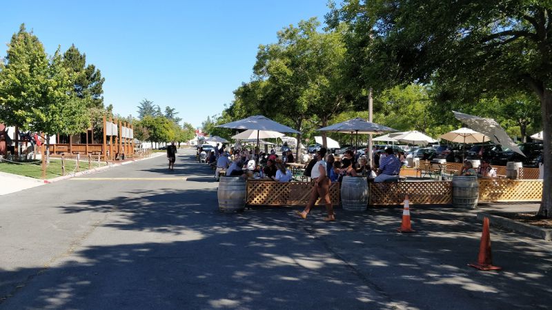 食物车对面的一片树荫下有不少餐桌,似乎拦起来了。过去一看,确实说‘关闭了’(Closed)。没办法,只好晒太阳了。