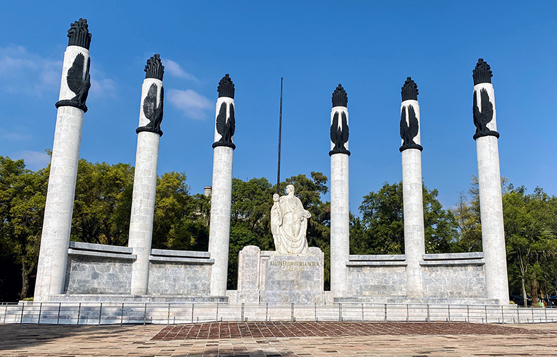 美墨战争是墨西哥人之痛。但这六个年轻的军校学员却是他们的骄傲。1952年,尼诺斯英雄纪念碑建成。尼诺斯是男孩的意思。六位年轻人的遗体被安葬在这里。六根顶部有青铜火炬的柱子傲然挺立。
