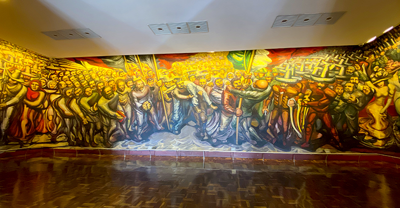 不懂墨西哥的历史,不知画上画的是什么。标签说明都是西文,更不懂。只好装作欣赏艺术了。