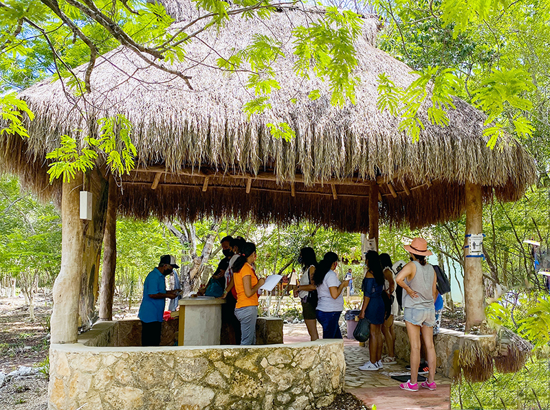 这个Cenote是当地玛雅人经营的,要买票进入。导游说,旅游旺季,这里人满为患,常常要排很长时间的队才能进去。