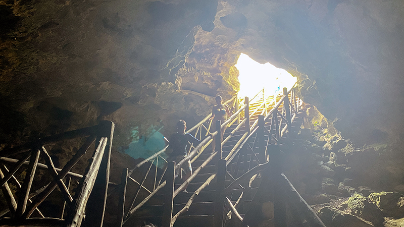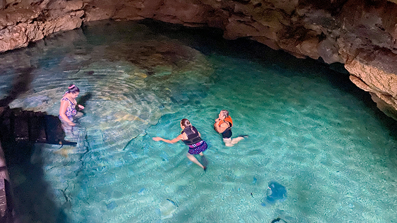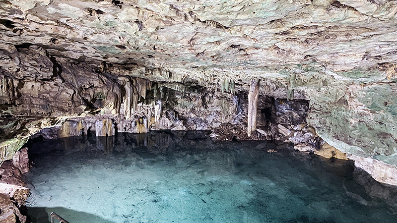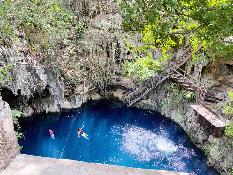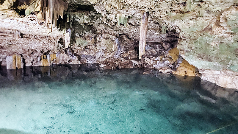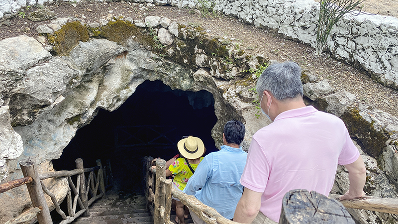 导游告诉我们,整个尤卡坦州都是平坦的,地表没有山,也没有河流和湖泊。但是尤卡坦的地下水源非常丰富,所以这片土地很富饶。地下水源形成了许多天坑或天然水井Cenote,这是尤卡坦旅游的一个看点。