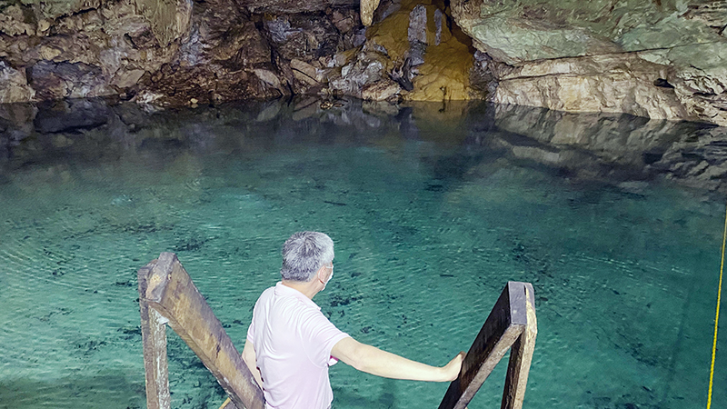 这里没有别的游客,只有我们和导游。静静地看着这一池碧水,犹如置身仙境石窟,穿越到了另一个时代。