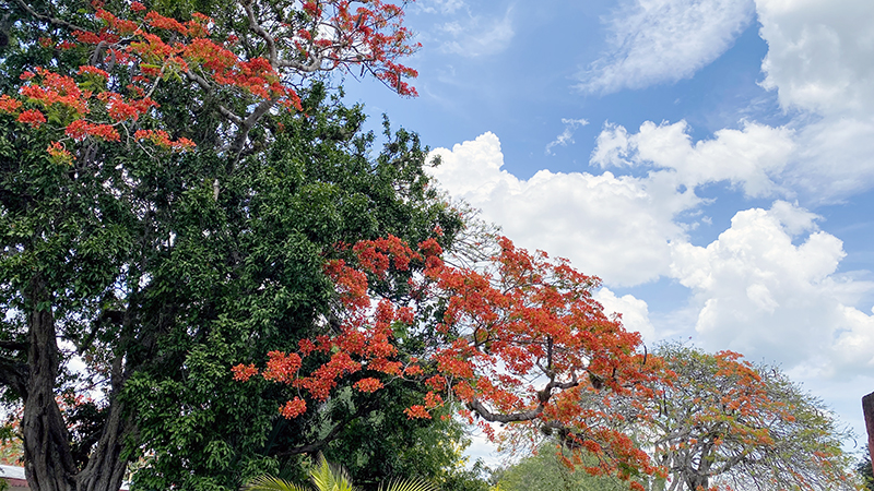 尤卡坦到处都是这种开着红花的树。问导游这是什么树,导游说,火焰树。