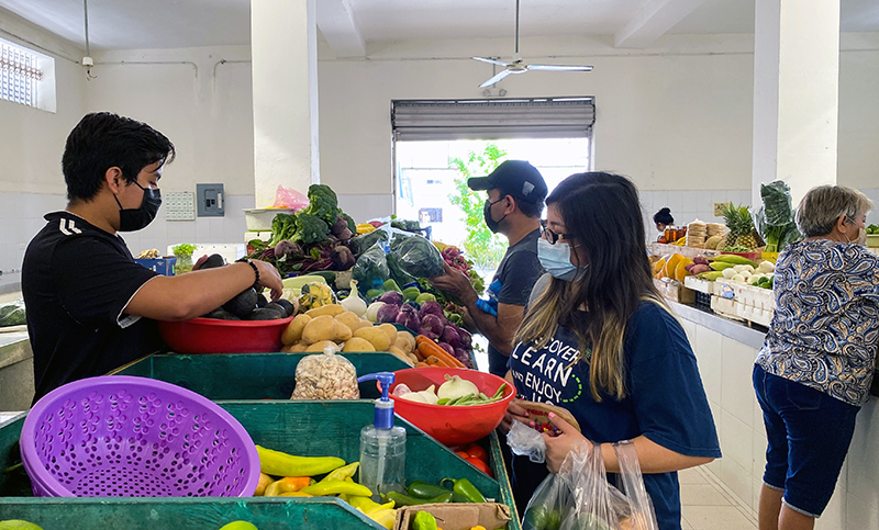 导游女买了西葫芦,辣椒,柠檬,圆葱 –- 这是我认识的菜。