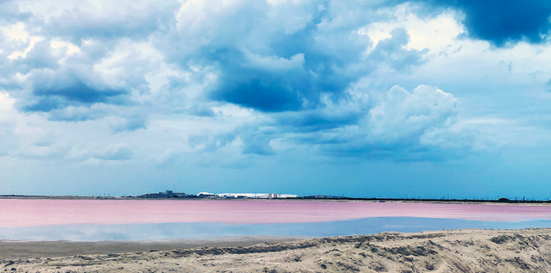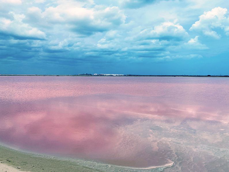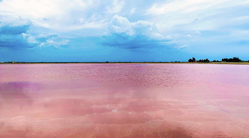 这里其实是盐场的晒盐池,由于有一些微生物而呈现出奇特的颜色。