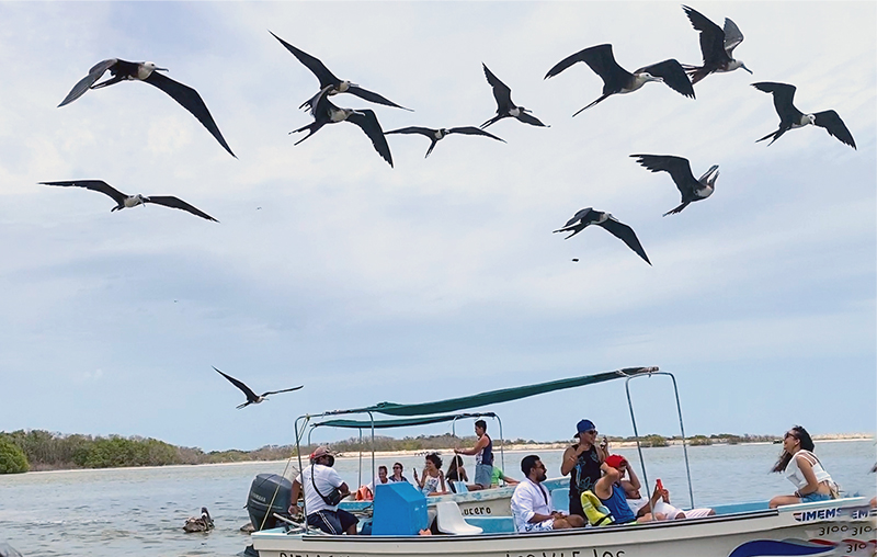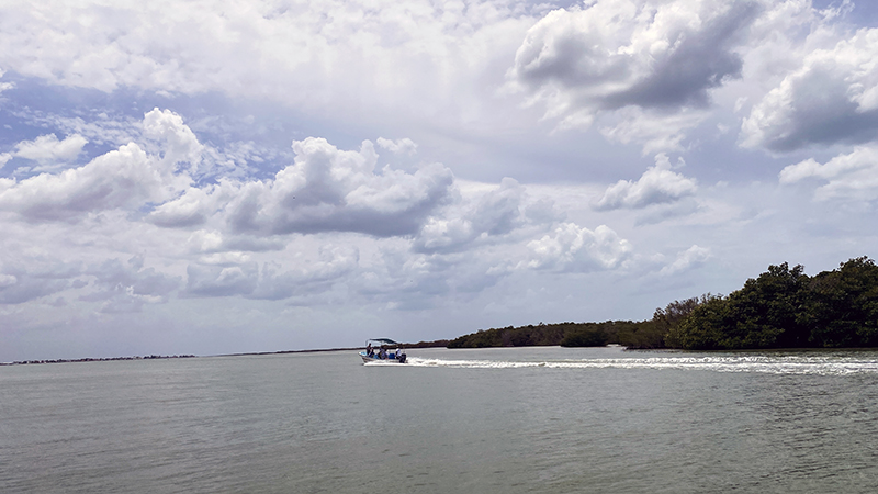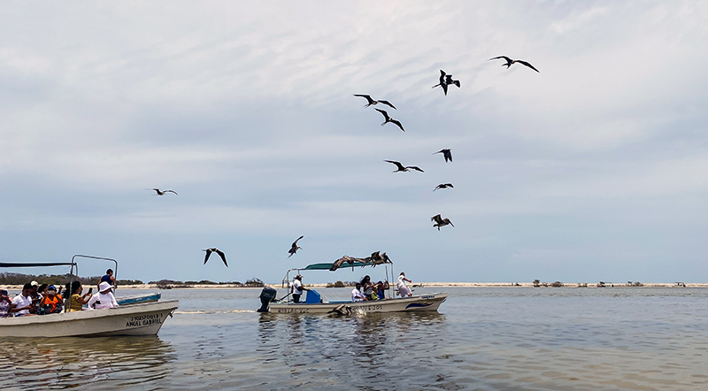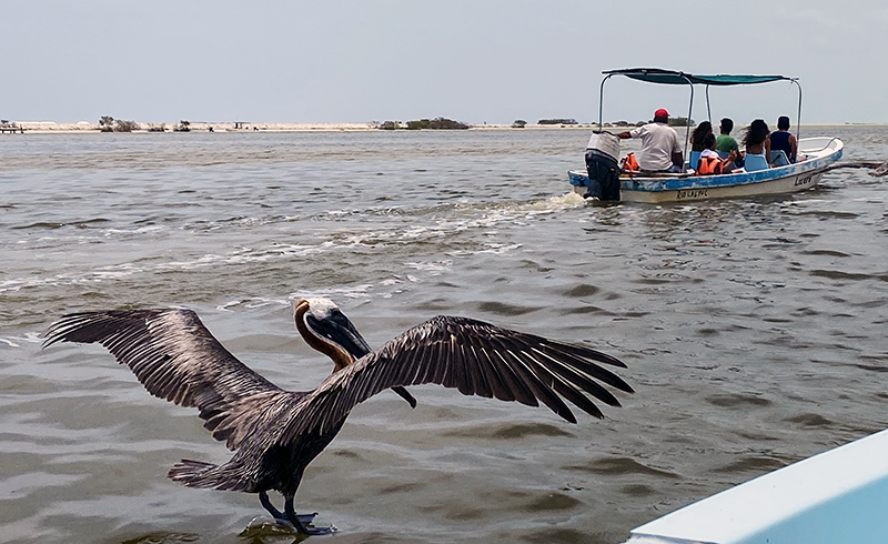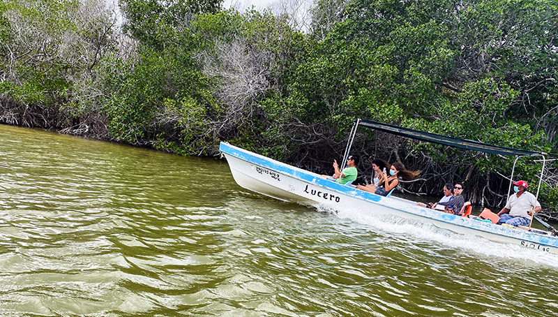 管它去什么地方呢!乘着小艇在河面上驰骋,这就足够了。在墨西哥这么多天,这是第一次不用戴口罩。尽情呼吸着带着水味的空气,心情好极啦!