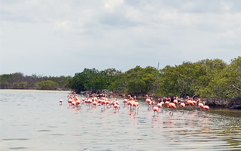 原来,我们被带到了自然保护区看野生动物。一群群粉红色的火烈鸟在河中嬉耍。头顶上是各种鸟类自由飞翔。