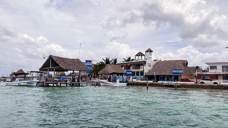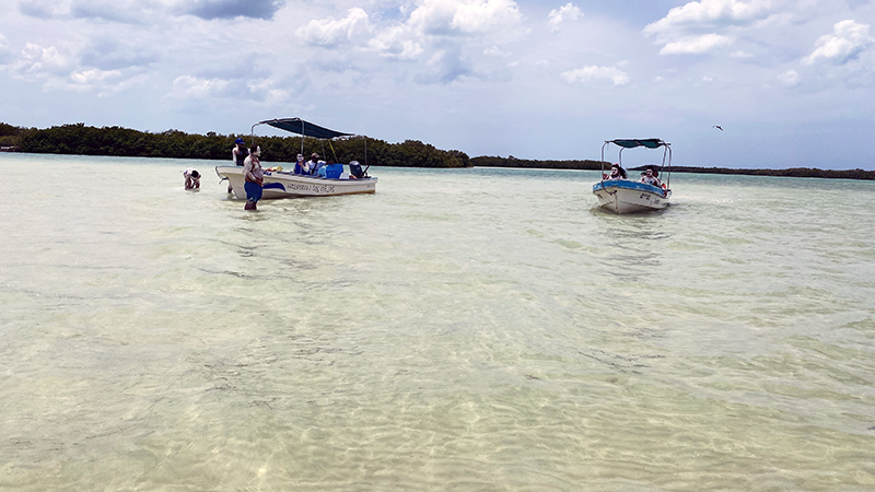 原来下一个项目是去看一个玛雅遗址,可是临时取消了。我们被带到了一条河边,登上小艇。