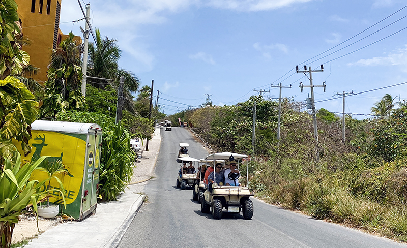 来前做功课时就知道,在女人岛上,最好的交通工具是高尔夫球车。我们在坎昆港口时,就有人缠着我们,让我们租车,44美元,还说到了女人岛更贵,要55美元。到了女人岛,更是有人在招揽租车的游客。