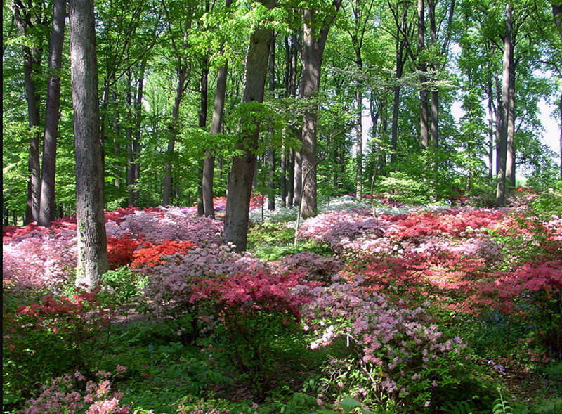 和他的堂兄阿尔弗雷德的尼莫尔庄园里的法式花园不同,亨利设计的鲜花不经意地开在小径旁,开在树丛里,开在池塘边,开在自然中。