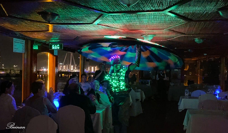 船上的自助餐吃的是什么,已经记不得了。但是在传统阿拉伯木船上,在微波荡漾的河面上,在夜晚色彩斑斓的灯光中,听着阿拉伯音乐吃晚餐的情景却记忆犹新。