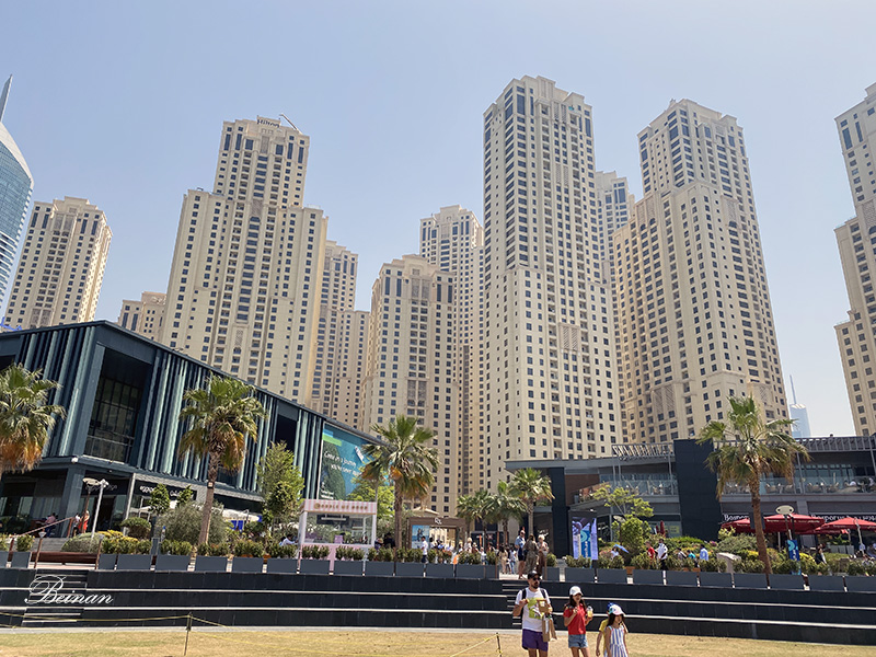 JBR是2010年才完成的一个海滨社区。一共有35座住宅楼,5座酒店,以及相应的住宅设施,非常繁华。