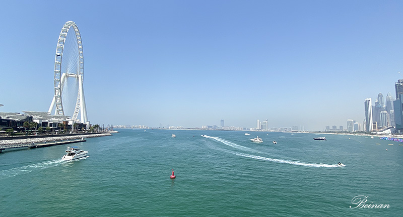 大桥的另一端,是迪拜在2018年新建成的人工岛 — 蓝水岛(Bluewaters Island)。岛上最有名的,就是那世界第一大的艾因迪拜观景摩天轮。