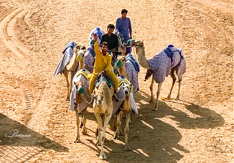 一路上,萨拉丁给我们讲赛骆驼的事儿。他先让我们猜猜,参加骆驼比赛的是公骆驼还是母骆驼。