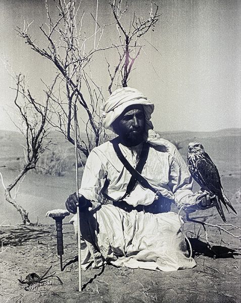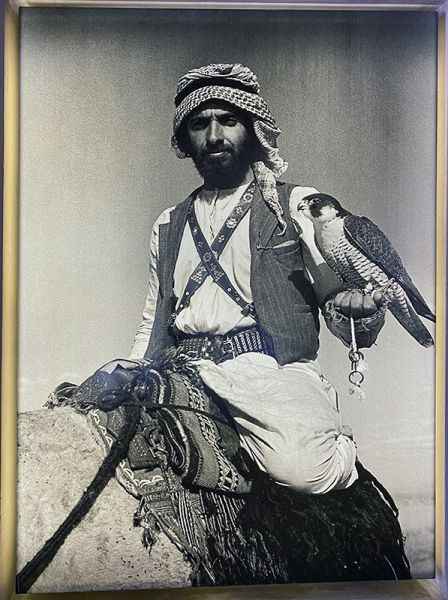 那时的谢赫·扎耶德是阿布扎比酋长国东部地区长官,在艾因居住。他从小就学会了猎鹰。塞西格为他在猎鹰途中拍摄的这张照片成为名照。