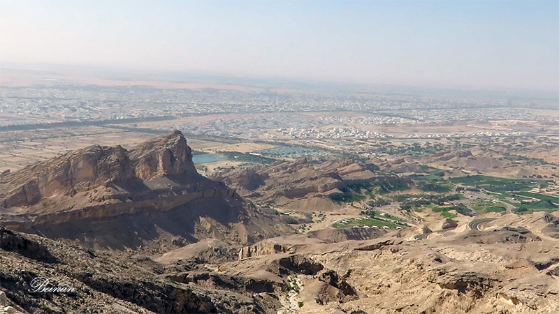 这座山位于阿联酋和阿曼的交界处。一面是艾因,一面是阿曼。