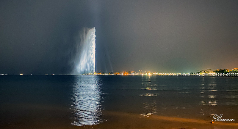 喷泉的水是红海的咸海水,日夜不停地喷放。整座城市都能看到这个喷泉。它是吉达的最受人喜爱的地标。