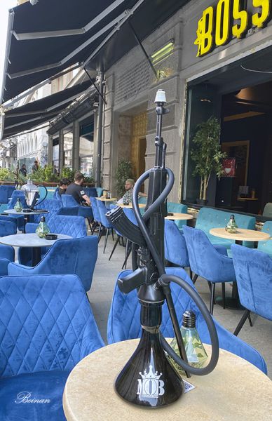 没听说罗马尼亚是战斗民族啊,怎么饭桌上还摆冲锋枪?哦,原来是烟枪!立刻觉得还是刚才的那个通道更有情调、更安全一些。