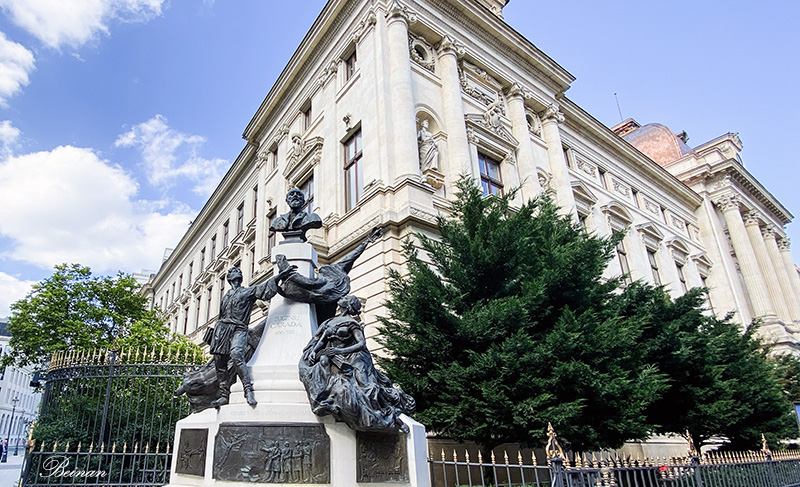 银行大楼新古典主义风格的建筑看起来就是一座宫殿。导游说它的内部装饰也特别华丽。它是罗马尼亚建筑的宝贵遗产。里面有国家银行博物馆,供游人参观。可惜我们没有时间一饱眼福。只能看看外观了。