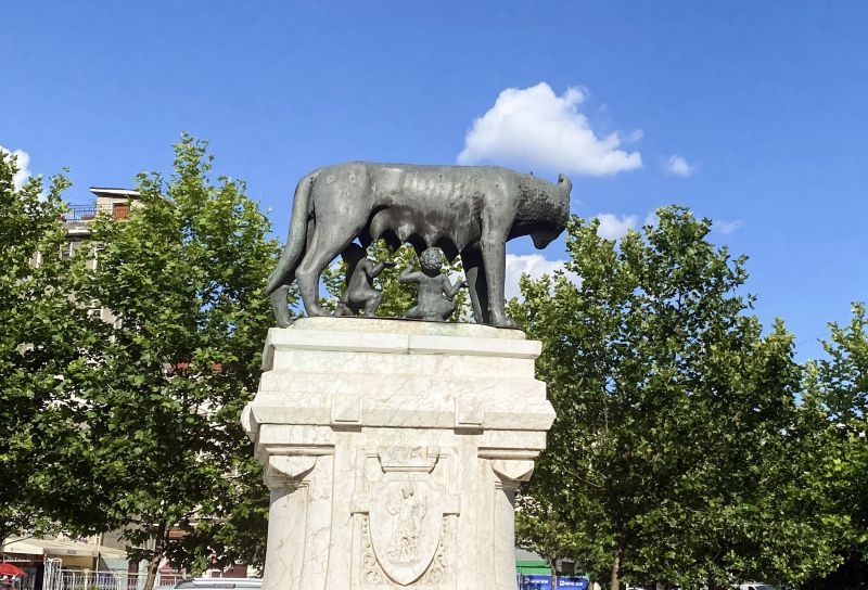 在我们旅馆附近的广场上,有一座高高的母狼喂养两个婴儿的雕塑。这是20世纪初来自意大利的礼物。