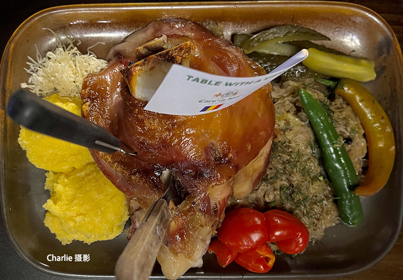 这是一个烤猪肘。味道极好,表皮是酥脆的,里面的肉烂烂的,入嘴即化,且回味无穷。后来大家一致公认,这是我们巴尔干旅程中吃过的最好的一道菜。现在还想着呐。