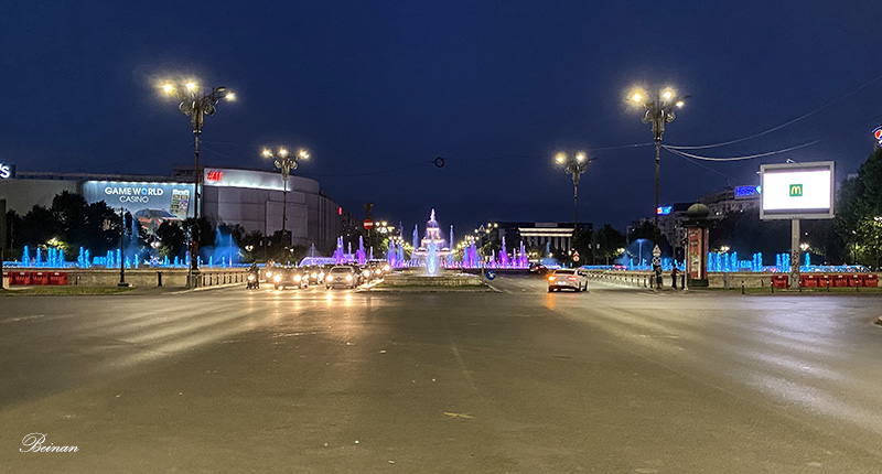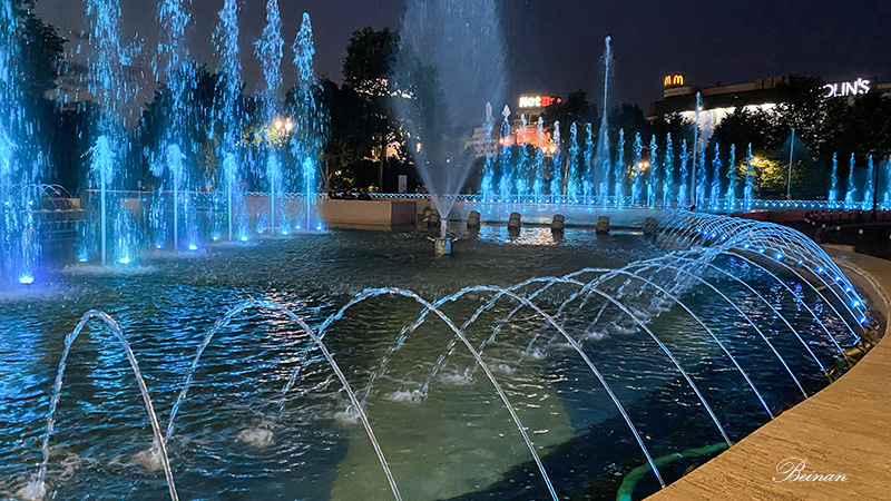 离我们住的旅馆不远,就是布加勒斯特著名的喷泉群。这里有44个喷泉,位于市中心的阿尔巴尤利亚广场(Alba Iulia Square)和宪法广场(Constitution Square)之间,蔓延1.4公里。