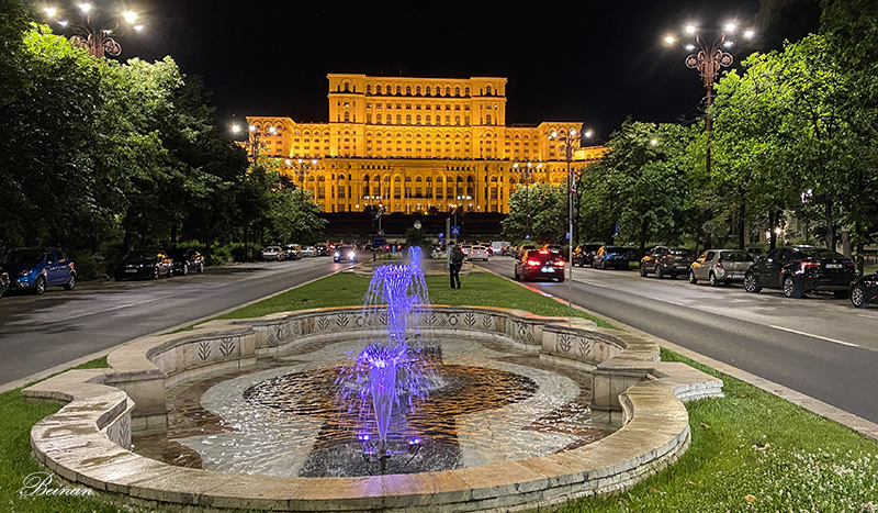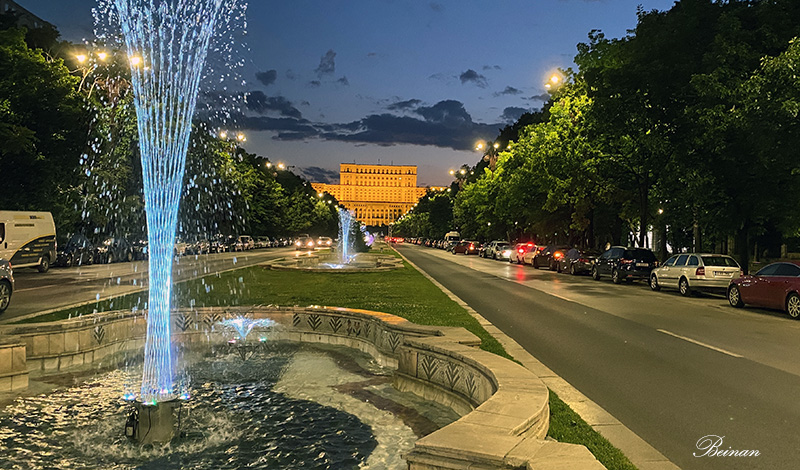 这条布满喷泉的大道尽头,就是举世闻名的罗马尼亚人民宫。
