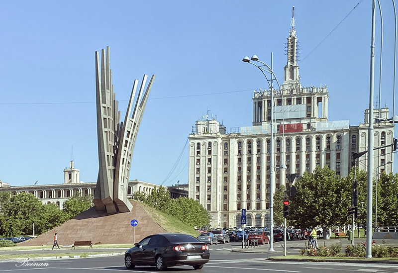 现在,这个罗马尼亚社会主义时期最大的建筑前,耸立着一座20多米高的巨型雕塑,象征着三个指向天空的翅膀。