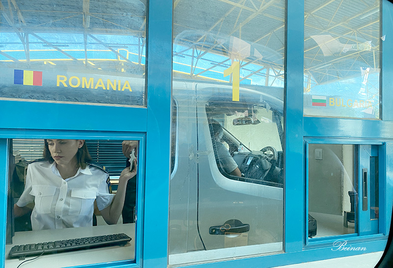 罗马尼亚美女检查官将我们的护照一一盖过章,递给了旁边的保加利亚检查官。保加利亚检查官又将我们的护照一一盖章,从另一窗口递还给我们。