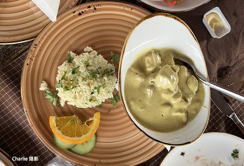 后来还是找到了导游先前推荐的餐馆。这也是这次出行觉得舒畅的一件事。因为我们的导游对这一路非常熟悉,和我们相处几天,他也摸到了我们习惯,因此常常能推荐我们喜欢的餐馆。
