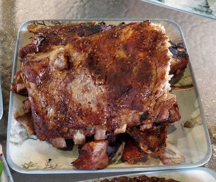 阿立注:猪排先烤箱里锡纸包住烤2个半小时,再芭比寇烧烤。