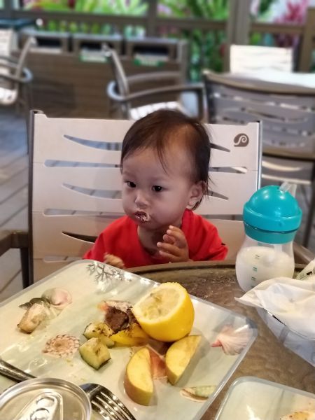 捕鲸村回来,稍事休息。小小阿立先去买新鲜海鱼,猪扒等。