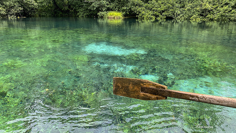事先没做功课,不知这乘船游河有什么特殊意义。但当我们登上小船,在河上游荡时,我简直惊呆了–- 这河水好清澈啊!