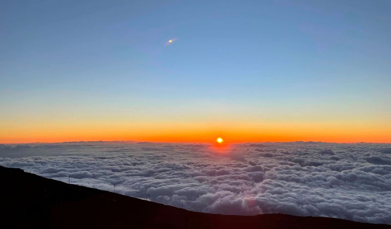 太阳已经下山,哦,下云海了(7点15分):