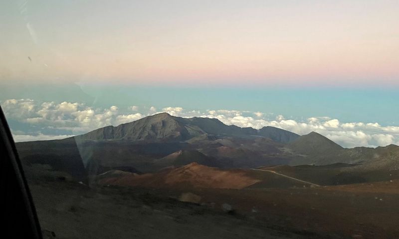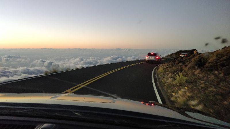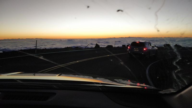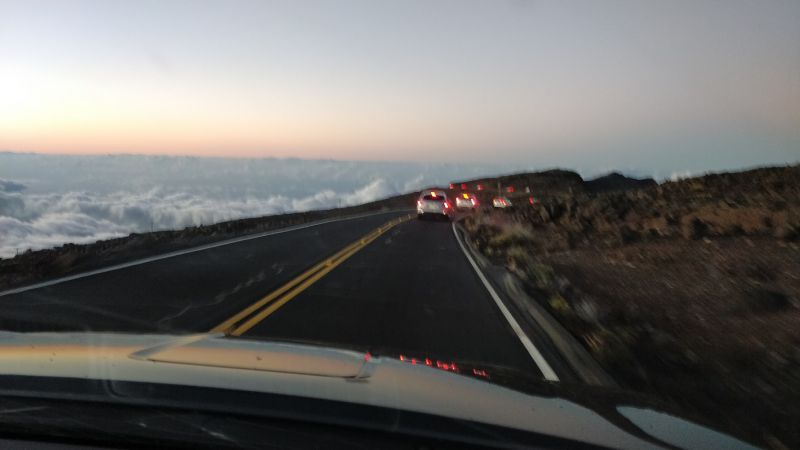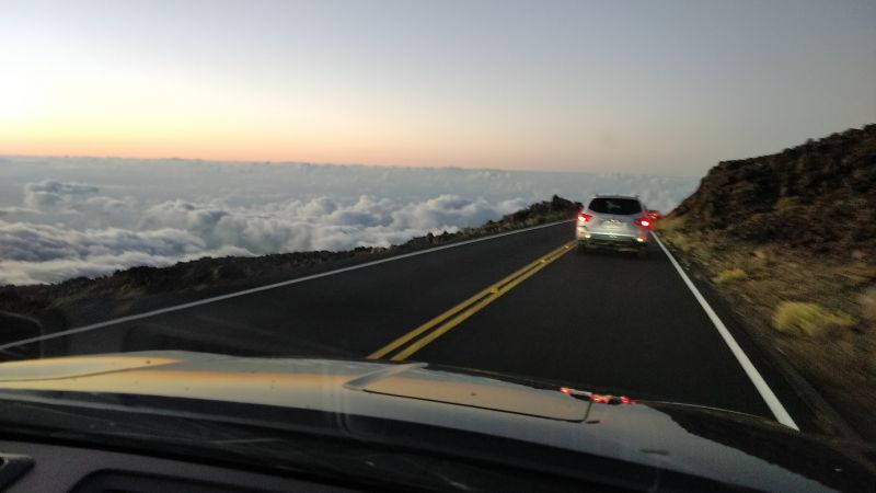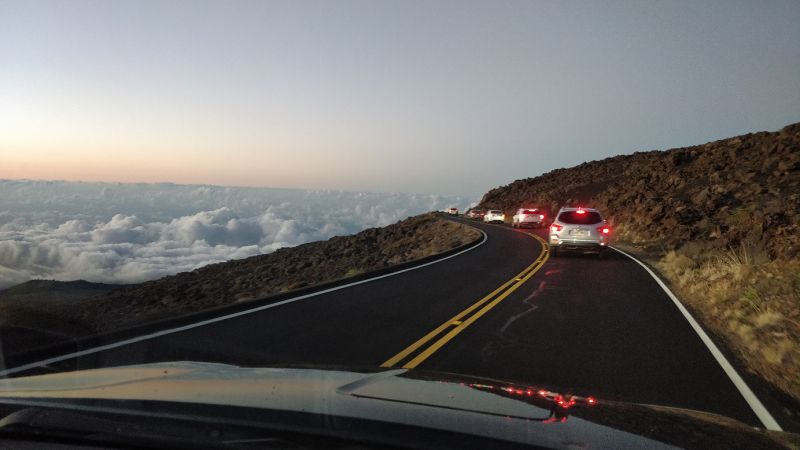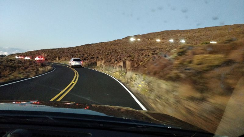 后面的照片都省略了。一路下山,本就弯弯绕,限速很低。车队又时常停顿下来。开了很久才出哈雷阿卡拉国家公园。再慢慢弯弯绕,下山。。。
