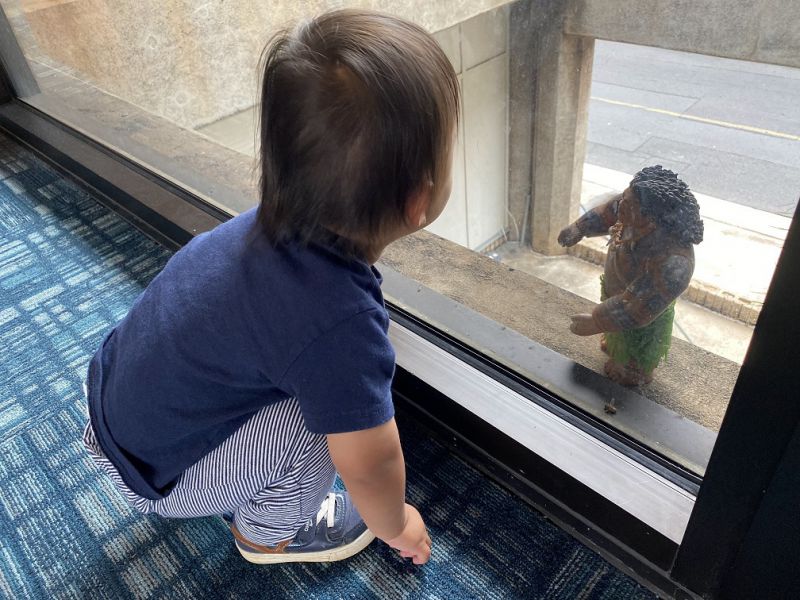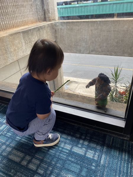 小小阿立(脸书家庭短信群):“毛伊机场见到毛伊人,三世不肯走了(He saw a Maui at Maui Airport, and wouldn’t leave)。”
