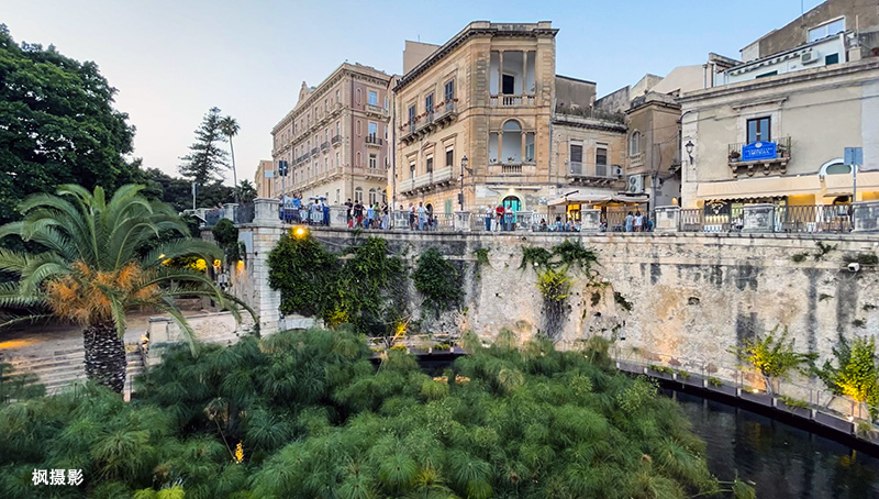 锡拉库萨的老城在奥提伽岛(Ortigia)上,由一条狭窄的水道与城市分开。