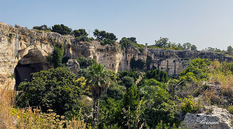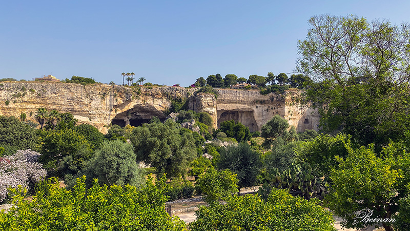 这是一个古老的采石场。锡拉库萨古代建筑用石,都是从这里生产。这里也曾是个大型墓地。有人说阿基米德的墓地就在这里,不知真假。现在这里种满了柑橘和木兰树。