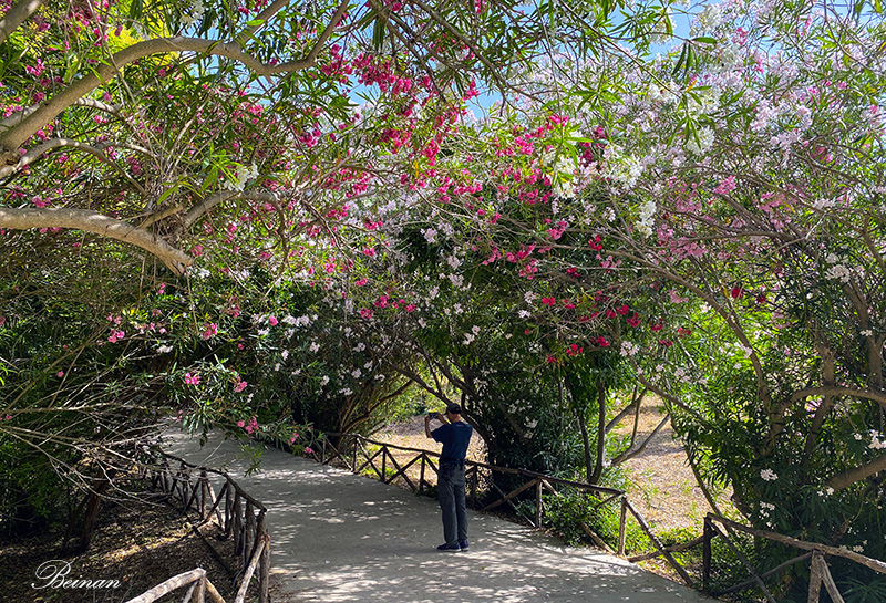 入口处花树形成的天然林荫拱门好漂亮。摄影大师一看到美景就挪不动步了。