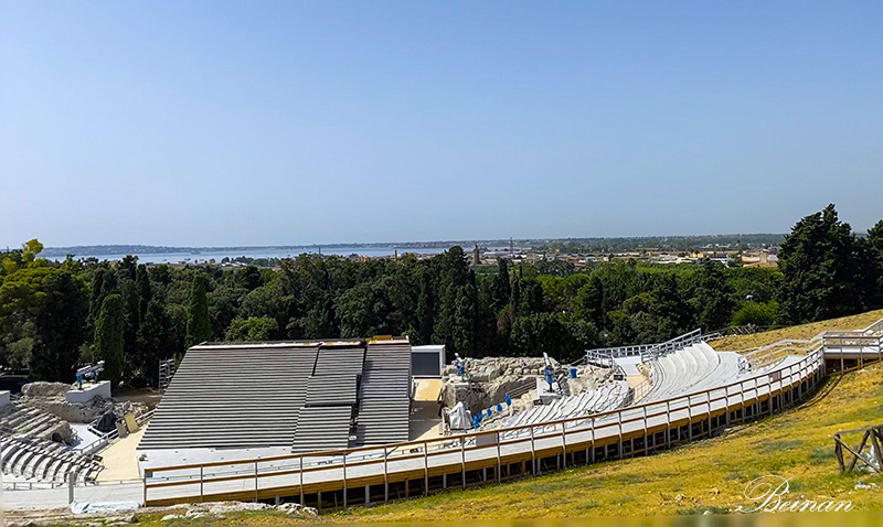 考古公园里最著名的遗址是这座希腊剧场。可惜正在施工,看不到原来面目。但是可以看到它建在高高的山顶,俯瞰大海,非常壮观。