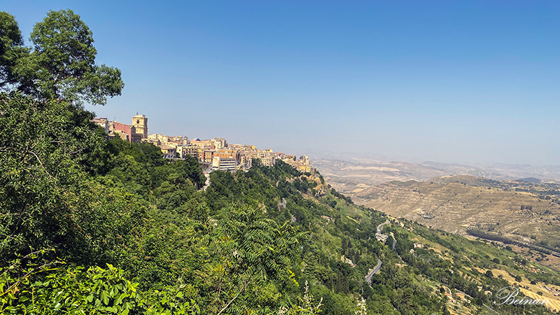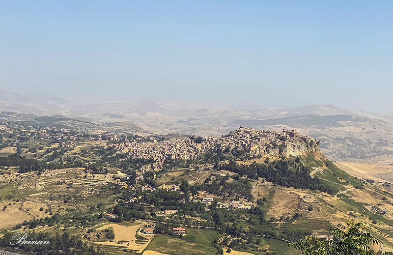 看到了远处山顶上的小城卡拉希贝塔(Calascibetta)。
