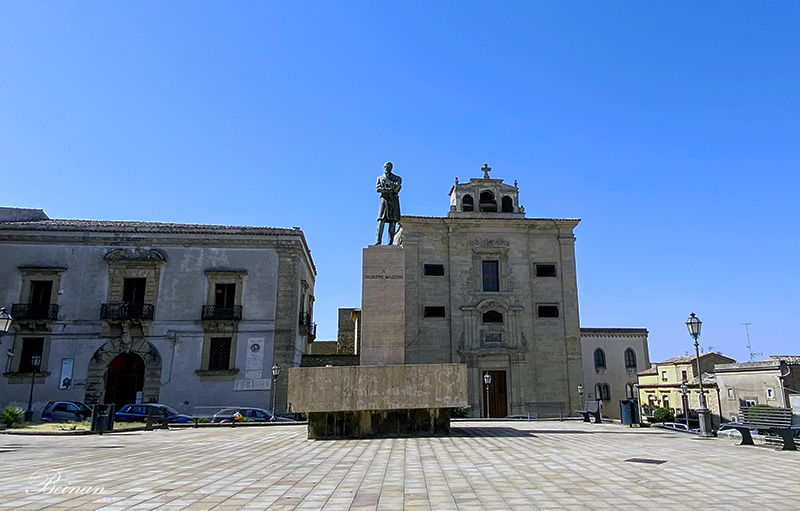 古城的中心是这个朱塞佩·马志尼广场(Piazza Giuseppe Mazzini)。塑像后面是圣米歇尔阿尔坎杰洛教堂(Church of San Michele Arcangelo)。