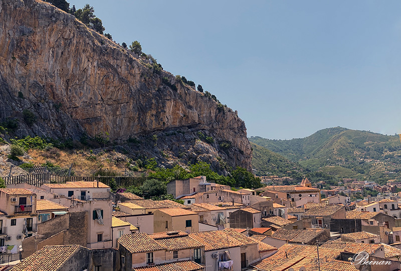 大教堂上是个观景的好地方。传统的西西里房屋橘黄色的屋顶覆盖城区。洛卡山的悬崖峭壁仿佛伸手可触,就像座天然的城堡,守卫着小镇。
