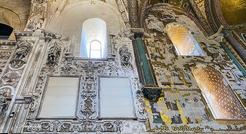 教堂里还专门展示了一些原始的拜占庭马赛克图案。因为这里的马赛克是西西里岛保存最完好的马赛克之一。