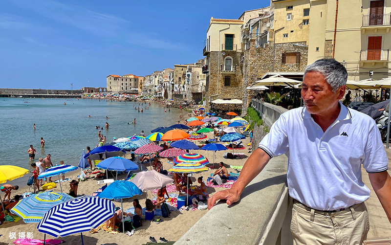 长长的海滩上挤满了人。不仅因为这里景色迷人,还因为这是奥斯卡最佳外语片《天堂电影院》的取景地而出名,引来世界各地众多影迷的打卡朝圣。