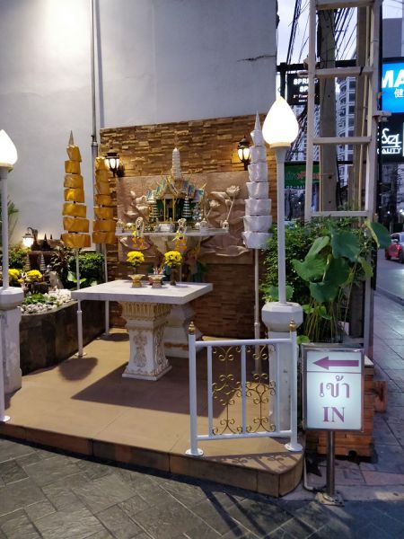 泰国信佛的比例看来很高。街道上随处可见佛龛,以及香烛之类的供奉。那几天没拍照,出游之后回曼谷,趁机拍了些街头佛龛照片(有图才有真相)。