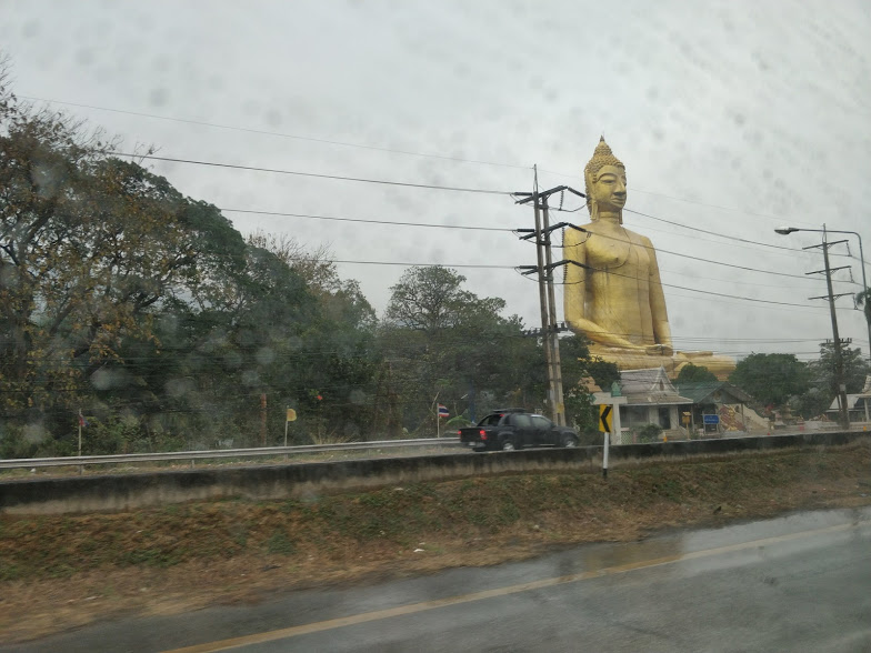 道路边时而能见佛像,很高大的佛像。有时山上的佛像也隐约可见。偶尔拍了几张照片。